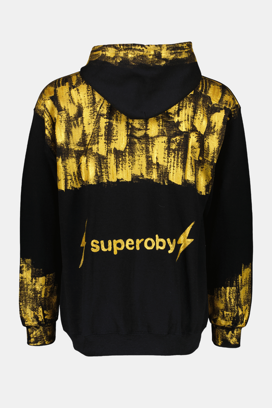 Je suis complètement fan de mes tenues superoby ! Aujourd’hui, je porte mon pull à capuche, ultra confortable et stylé pour aller au cinéma. Ce que j’aime particulièrement, c’est cette touche artistique unique, car chaque pièce est peinte à la main, ce qui la rend vraiment spéciale.